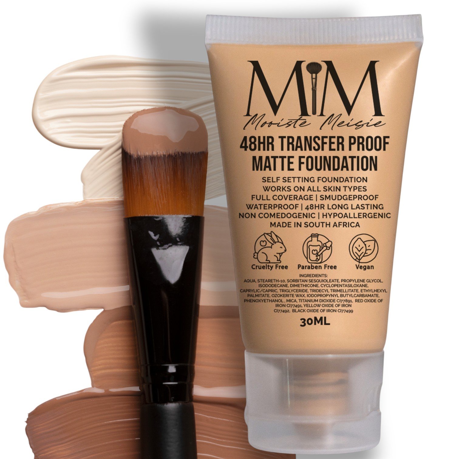 Experience the transformative power of Mooiste Meisie’s 30ML Transfer Proof Matte Foundation. Achieve a flawless, long-lasting, and natural finish with ease and confidence. Visit our website to explore our range and find the perfect products for your beauty needs.